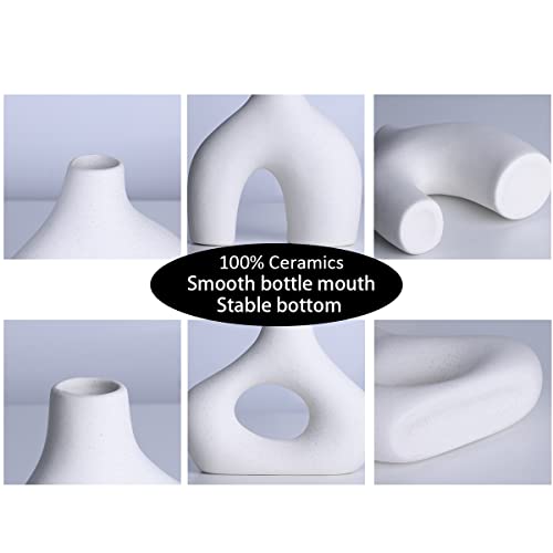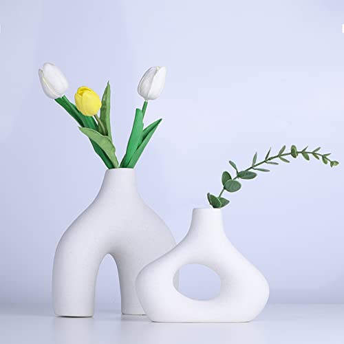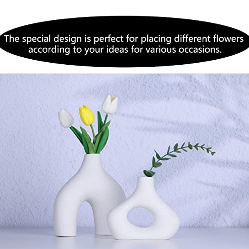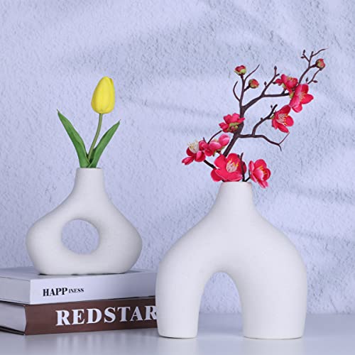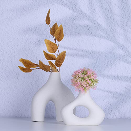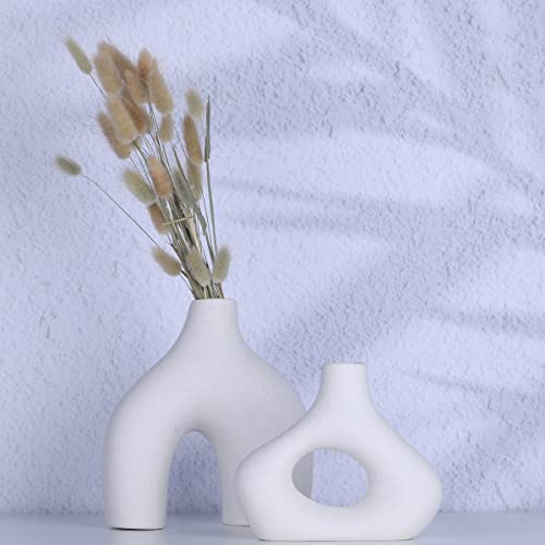 YUNSHID - يونشيد مجموعة من 2 مزهريات بوبو من السيراميك الابيض للديكور، مزهريات دونات دائرية غير لامعة للزهور وعشب البامباس، محايد، بوهو، نمط نورديك وبسيط، مثالية لديكور المنزل الحديث، ديكور الرف