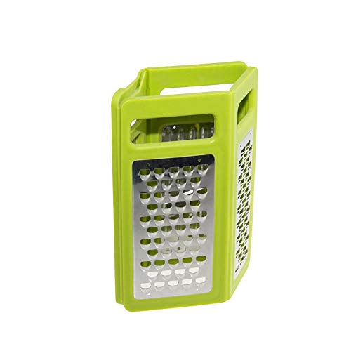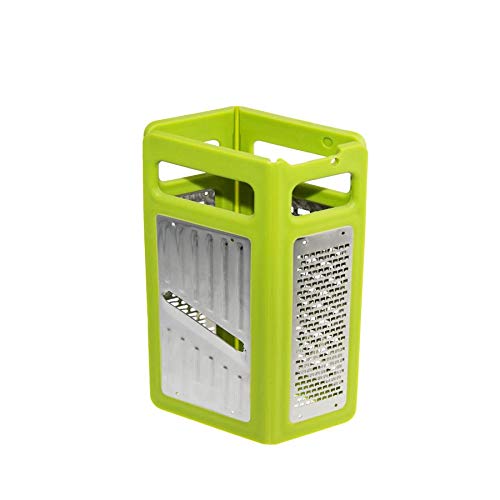 YupFun - Four Sided Kitchen Grater ,Lockable Catch Fold Flat Grater, 4 Blade Styles Stainless Steel ,Cheese ,Vegetable Slicer ,Zester ,Spices S,pace Saving Includes Plastic Case, Green