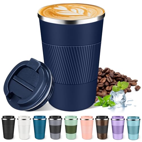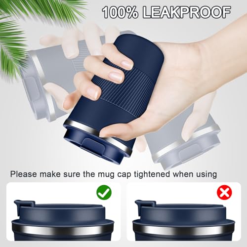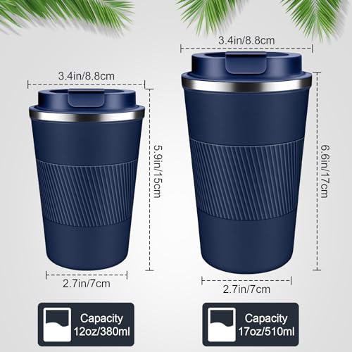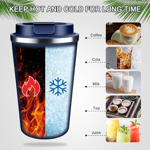 YUTGSMPO - Insulated Coffee Mug 12oz & 17oz, Leakproof Coffee Cup with Lid, Thermal Coffee Tumbler Stainless Steel Reusable Coffee Mug Keep Cold and Hot Gift for Men Women (Dark Blue, 12oz)