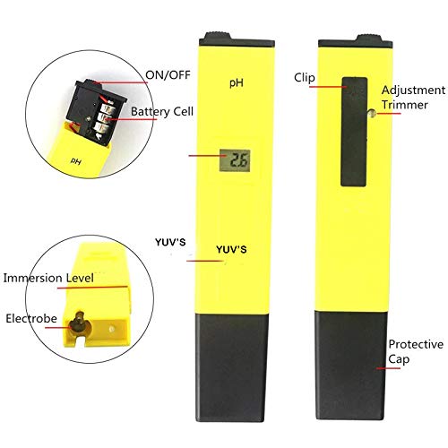 YUV’S - YUV Digital Pocket Pen Portable pH Test Meter ± 0.1pH High Accuracy with 0.00-14.00ph Measure Range for Drinking Water, Hydroponics, Aquariums, Swimming Pools. Water Quality Tester & Analyzer