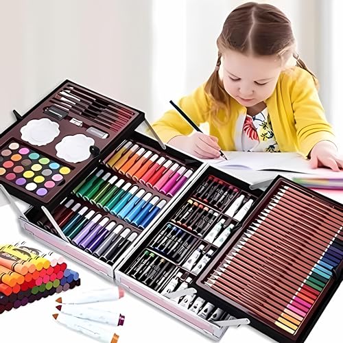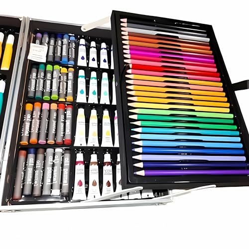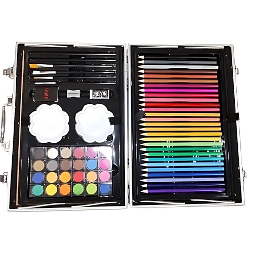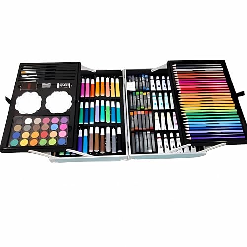 - مجموعة فنية للأطفال مكونة من 145 قطعة: تتضمن أقلام رسم وتلوين، 33 × قلم رسم، 28 × قلم ملون، 24 × كعكة ألوان مائية، 24 × باستيل زيتي، 24 × أنبوب ألوان مائية، 2 × قلم رصاص، 4 × فرشاة، 2 × ممحاة، 1 × مبراة، 2 × لوحة. مثالية للفنانين من جميع المستويات، من المبتدئين إلى المحترفين.