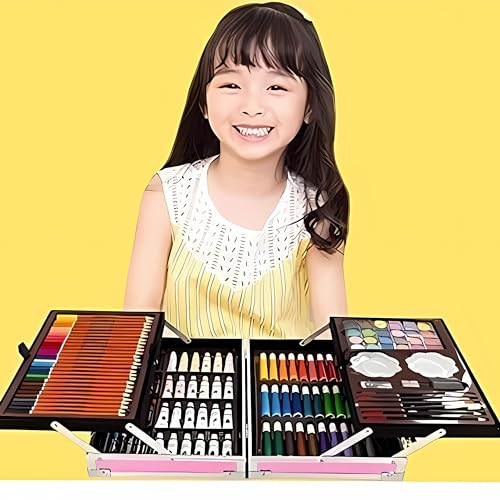 Yuvi Tech - مجموعة لوازم فنية للأطفال من يوفي تيك، 145 قطعة: أقلام رسم وقلم تلوين باستيل زيتي بألوان مائية مع فرش ومبراة وأستيكة - مجموعة رسم ورسم كاملة للأطفال - قرطاسية متعددة الألوان