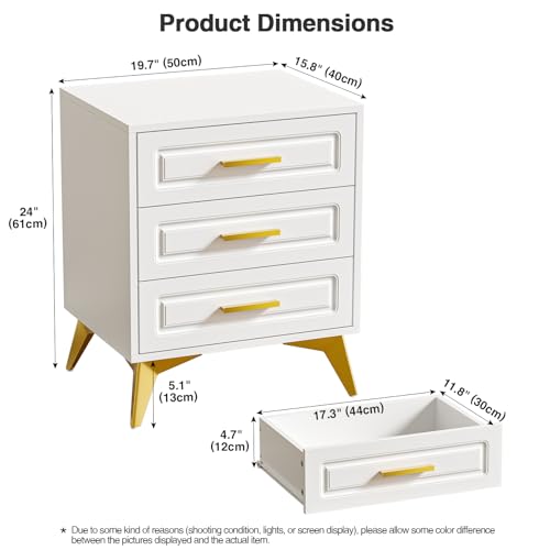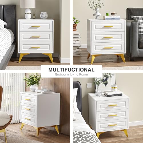 - High-quality material and stable frame: made of high-quality MDF material, this white bedside table is deformation-resistant and wear-resistant for long-term use. 4 metal legs provide good load capacity and stability for this bedside table.