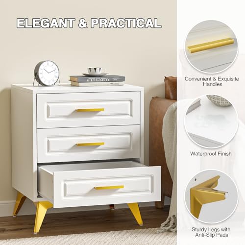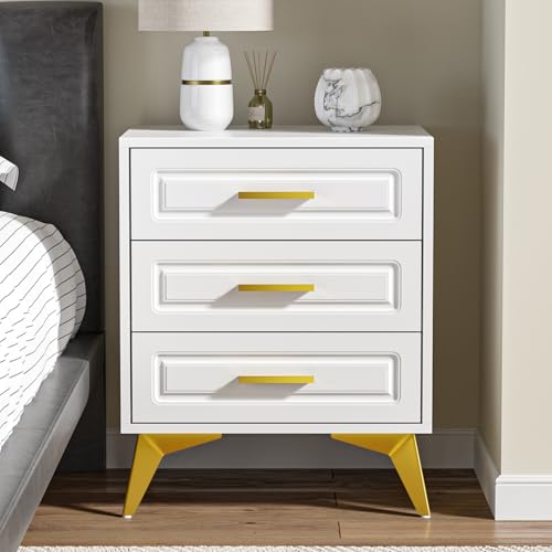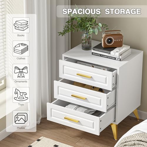 Yvsevnr - Bedside Table Modern Bedside Table White Bedside Table with 3 Drawers Small Chest of Drawers for Living Room Bedroom 50 x 40 x 61 cm