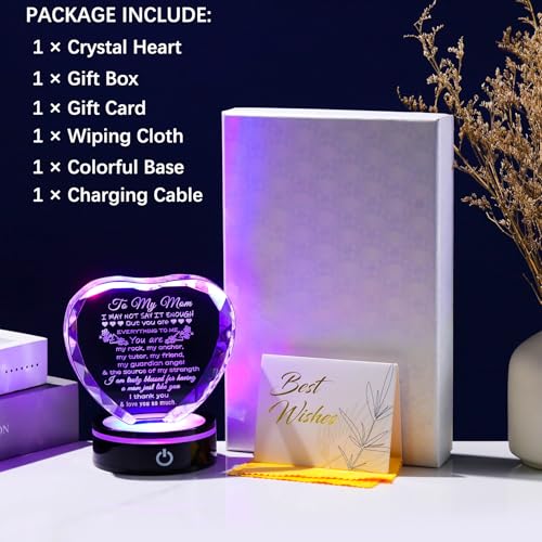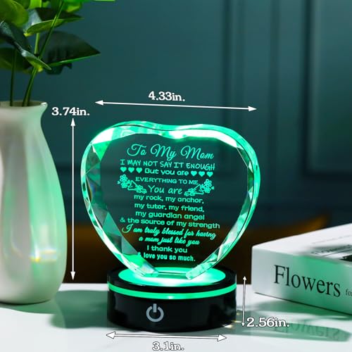 YWHL - YWHL Gifts for Mom from Daughter Son Moms Mother's Day Birthday Gifts Crystal Unique to My Mom Heart Keepsakes Gift for Mother with Colorful LED Base