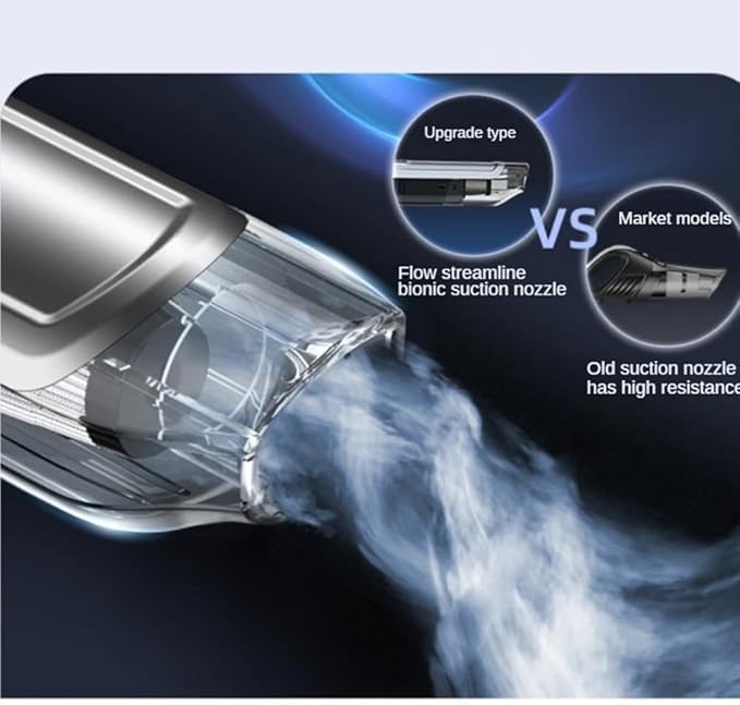 - تصميم محمول ولطيف على اليد: مكنسة لاسلكية صغيرة الحجم وخفيفة الوزن، سهلة الإمساك والاستخدام لفترات طويلة دون تعب اليدين، مثالية للسيارة والمنزل على حد سواء.
