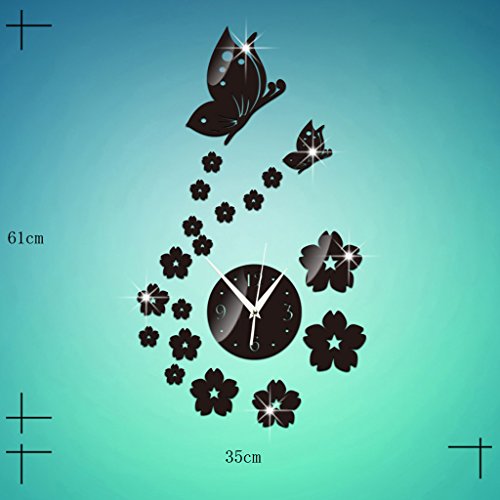 Yxx max - - ملصقات حائط جديدة ساخنة لتزيين المنزل يمكنك صنعها بنفسك من الاكريليك مراة فراشة ساعة كوارتز ابرة ساعات منزلية حديثة اللون: ذهبي .