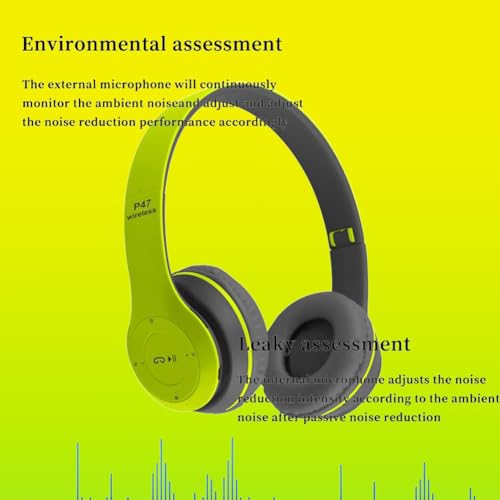 YY KATTY - سماعات رأس هايبرد لاسلكية مطورة بأوضاع شفافية ووقت تشغيل 65 ساعة وبلوتوث وميكروفون بصوت باس عميق ووسائد أذن ناعمة تدعم الشحن السريع من يايا كاتي، أخضر