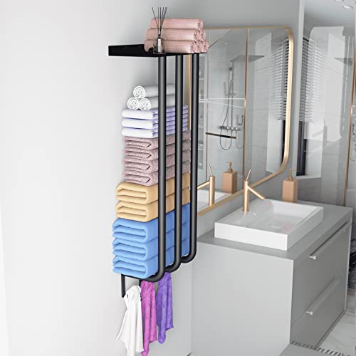 YYP - YYP Towel Rack Wall Mounted, New Upgraded 3 Bar Metal Towel Racks for Bathroom, Bathroom Towel Rack with Large Capacity Storage Metal Shelf and 3 Hooks, Easy to Install Bathroom Towel Storage,Black 10