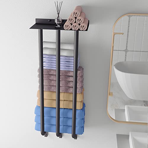 YYP - YYP Towel Rack Wall Mounted, New Upgraded 3 Bar Metal Towel Racks for Bathroom, Bathroom Towel Rack with Large Capacity Storage Metal Shelf and 3 Hooks, Easy to Install Bathroom Towel Storage,Black 39