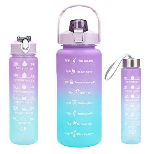 - Water Bottle Set of 3 - The Gradual Color Water Bottle combo comes in 3, each with a capacity of 64oz/32oz/16oz, front motivational quote, back volume measurement, every time you see or think about it, you will drink automatically and easily reach your daily goal.
