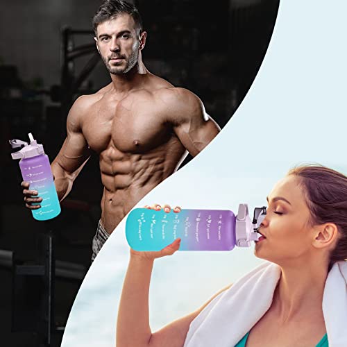 YYUOPYY - Motivational Water Bottles with Straw 3 Pcs, 64oz Half Gallon Time Marker Large Drinking Bottle Leakproof 2L Water Jugs for Sports Gym Travel BPA Free - Gradient Purple
