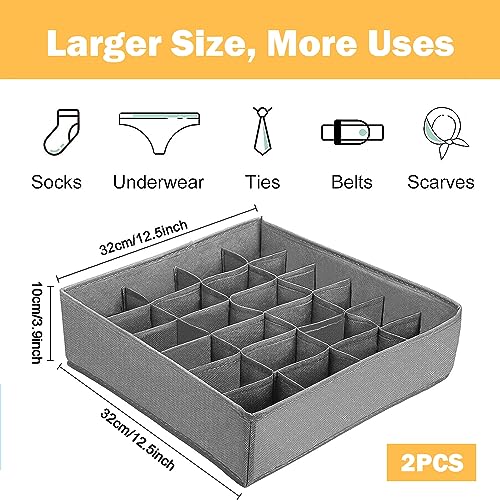 YZDZSW - Collapsible Closet Cabinet Organizer, 2 Pack Drawer Organisers, 24 Cells Closet Organisers Storage Box Sock Drawer Organisers for Socks Ties Underwear(Gray)