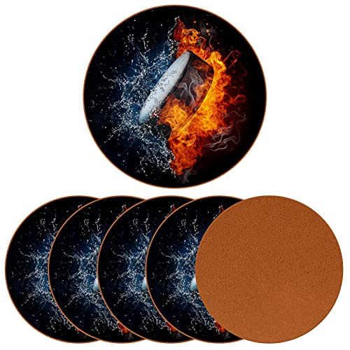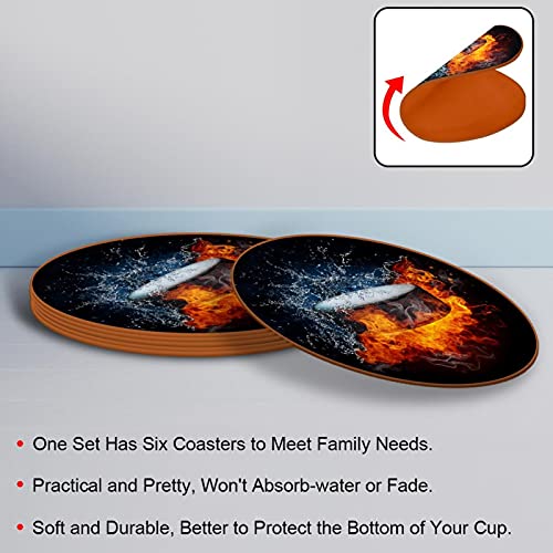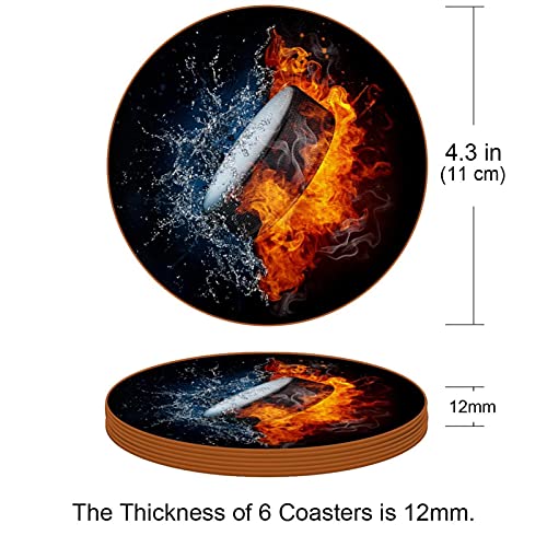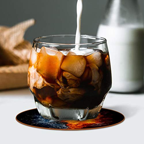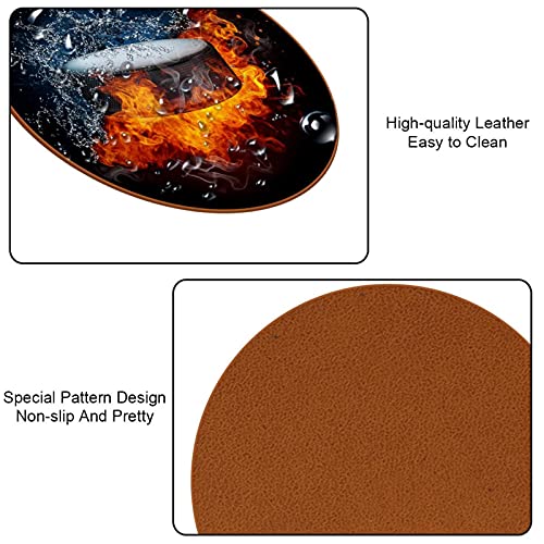 Z&Q - Z&Q Leather Microfiber Collision Fire Water Coasters 6 Pieces Round Coaster Waterproof for Home, Office and Kitchen, Glass Coaster for Drinks 11cm