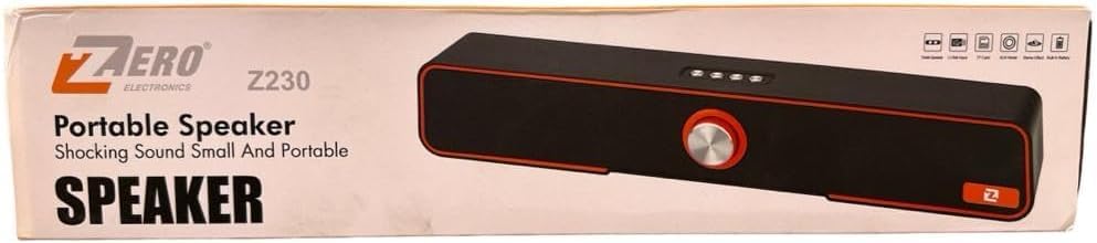 • Z230 Portable Bluetooth Speaker with USB Output and Memory Card Reader Output Black. مضخم صوت - منفذ بطاقة الذاكرة - منفذ USB وجهاز التحكم عن بعد موديل Z-230 مكبر صوت محمول Z230 يدعم البلوتوث مع مخرج يو اس بي ومخرج قارئ لكارت الميموري أسودأسود