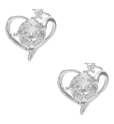 ZAHRA - ZAHRA Women's Metal Heart Shape Silver Lobe Earrings