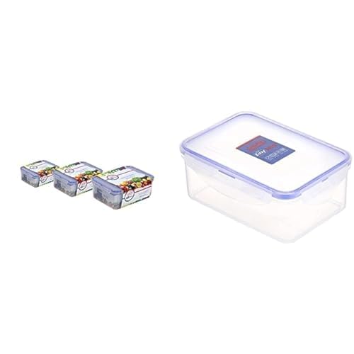 Zahran - Zahran tight lock food container set of 3, 06000513 + Zahran rectangular food container silicon with lock, 1 litre, blue/clear - 6000502