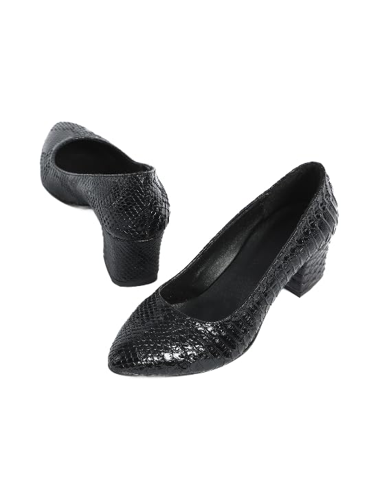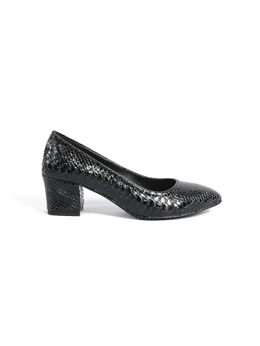 Generic - Zahwa Women Shoes Heeld Animal Print Snake Verne Texture 5Cm Meduin Heels 39 Black