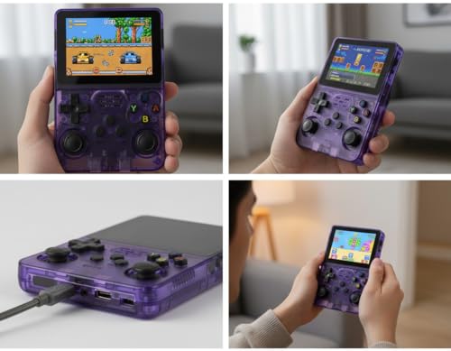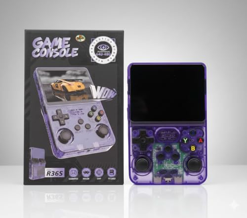 zain - ZAIN R36S Portable Gaming Console, 3.5-inch IPS Display, RK3326 Processor, Linux System, 64GB TF Card, 20000+ Classic Games, 3000mAh Battery (purple)