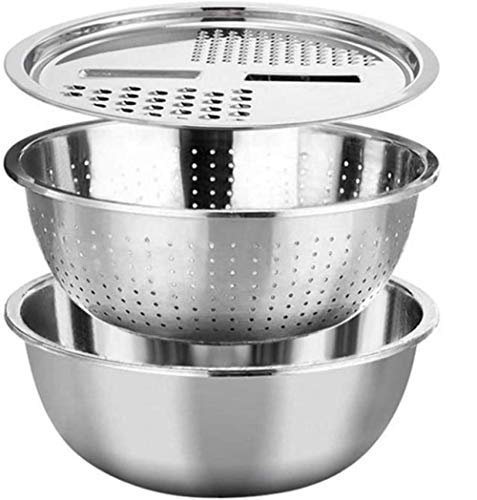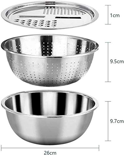 zaizai - zaizai Kitchen Grater Set, 3 Pieces 26 Cm Stainless Steel Drain Basket Vegetable Cutter, 3 in 1 Kitchen Multipurpose Julian Grater Salad Maker Bowl Kitchen Grater Cheese Vegetable Grater