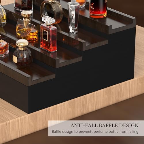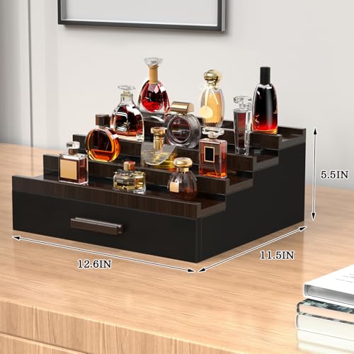 Zaldia - Zalida Wooden Cologne Organizer for Men 4 Tier of Perfume Display Holder of Drawer & 2 Hidden Compartments Larger Storage Space Mens Perfume Organizer Shelf Stand,Gift for Man (4T-Black Brown)