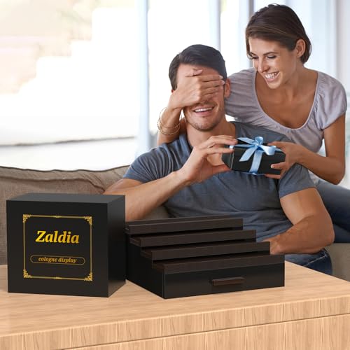 - 4 Layered Cologne Stand with Drawer : Zaldia cologne organizer adopts a 4-tier convenient classification,capable of holding multiple perfume bottles, allow you to display your preferred scent.The bottom drawer adopts divided sections design to keep rings,watches or necklaces in order.