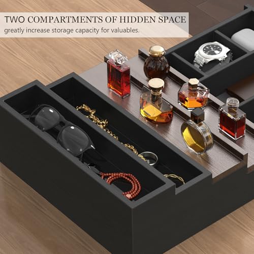 - Double Hidden Storage Space: This men's cologne stand features a 2 compartments of hidden space that can greatly increase storage capacity to accommodate the watch, ring, bank cards and other valuables. Maximise the vertical upward space to classify and Keep items organized and private.