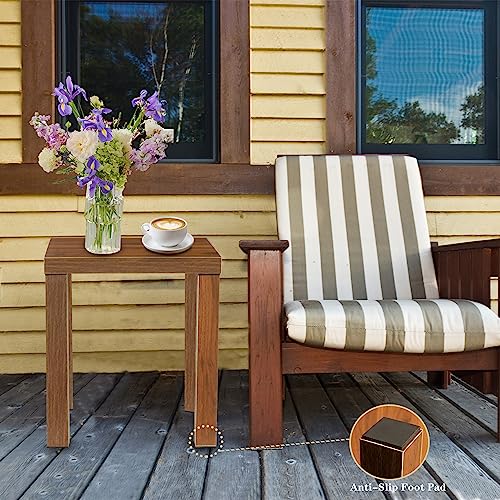 Zarnicy - Small Outdoor Side Table - Wooden Patio Coffee Tables for Outside - Square Water Resistant End Table for Pool, Porch, Indoor, Brown