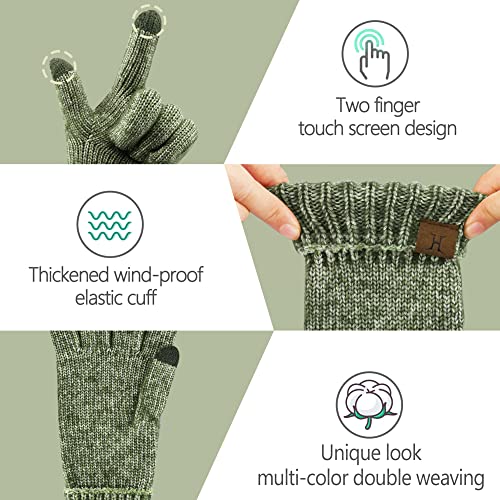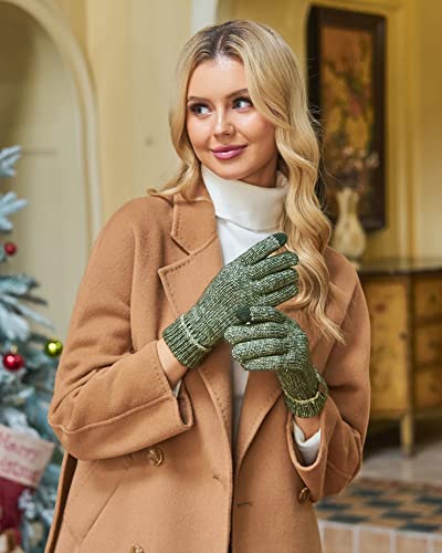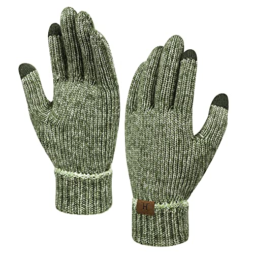 ZASFOU - Women's Winter Warm Touchscreen Gloves Knitted Winter Gloves in Cold Weather for Running Driving Cycling, Green, One Size