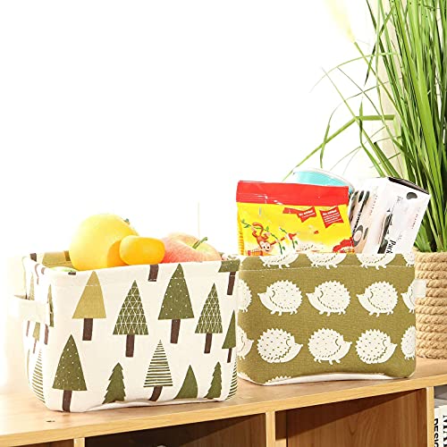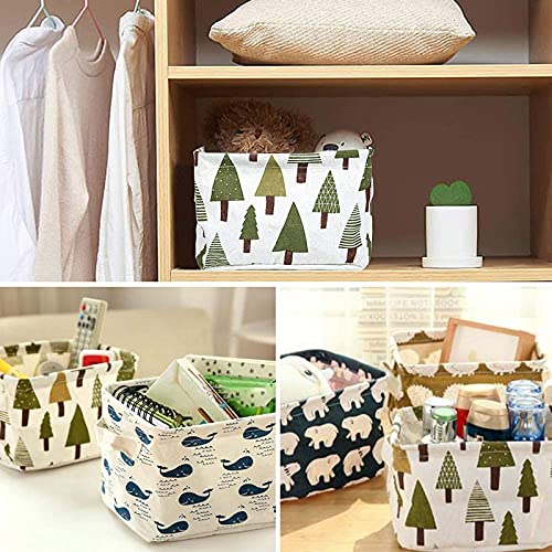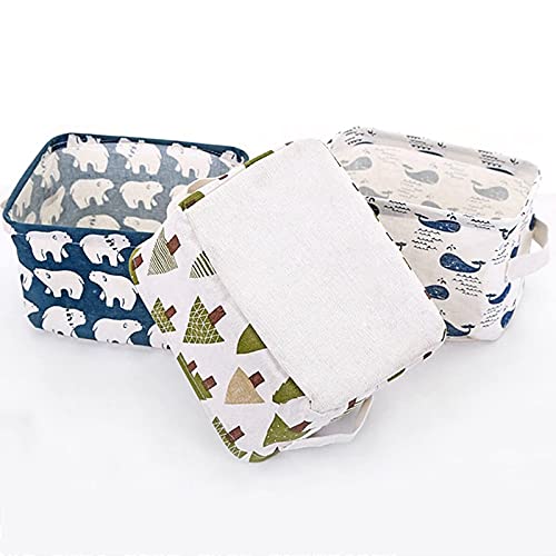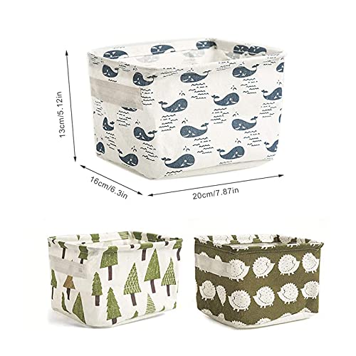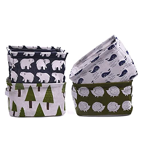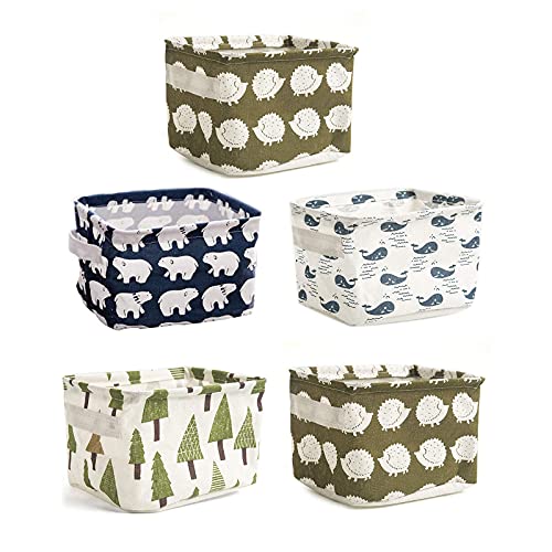 ZEACCT - 5 Pack Storage Baskets small,Foldable Mini Square Storage Bins Cotton Linen Fabric Storage Basket for Bathroom,Makeup,Books,Desktop Storage and Household Organizer - Multi patterns,20*16*13cm