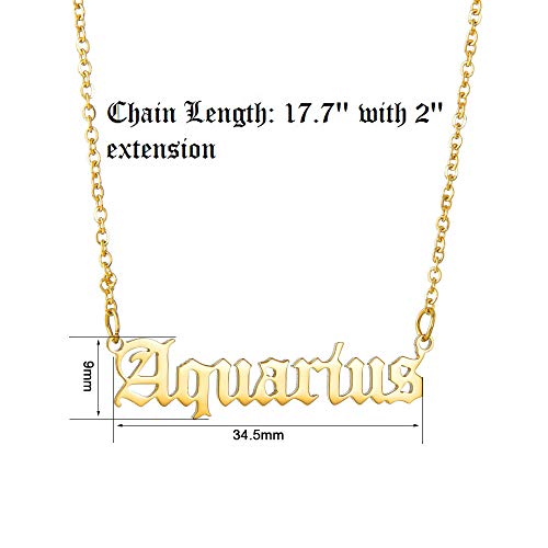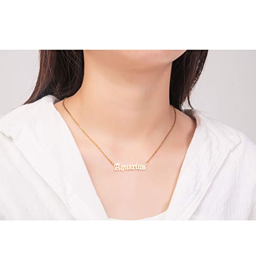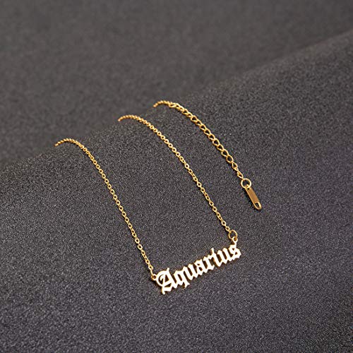 Zealmer - Zealmer Old English Letter Aquarius Necklace for Women Golden, Metal, not-applicable
