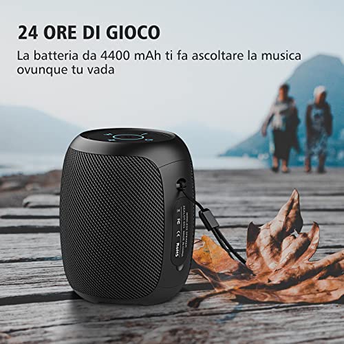 - Small Speaker & Ultra-light Portable:Small size (4.5*3.5*3.5in) and light weight (1.19 lbs), it can be easily hung on the bag or luggage. The 4400mAh lithium battery can let it play for 24 hours at 50%-60% volume, which is enough to meet our outdoor sports needs. Design makes it look very elegant and handy. You can easily carry it anywhere, use it in your car, on a trip, in a outdoor party, while walking and more.