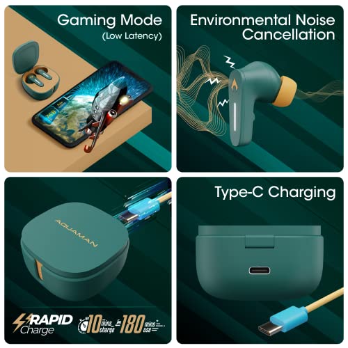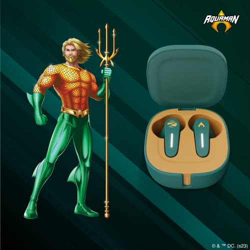 ZEBRONICS - ZEBRONICS DC Aquaman Edition Sound Bomb 7 TWS Earbuds with 40H* Backup, Rapid Charge, 50ms Gaming Mode, ENC mic, Voice Assistant, Flash Connect, Splash Proof, BT v5.2 and Type C