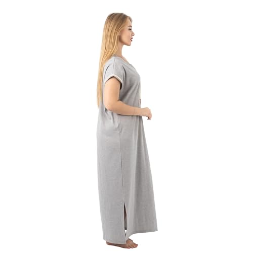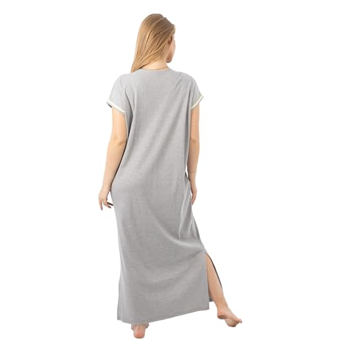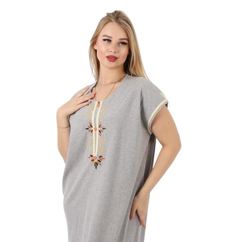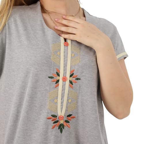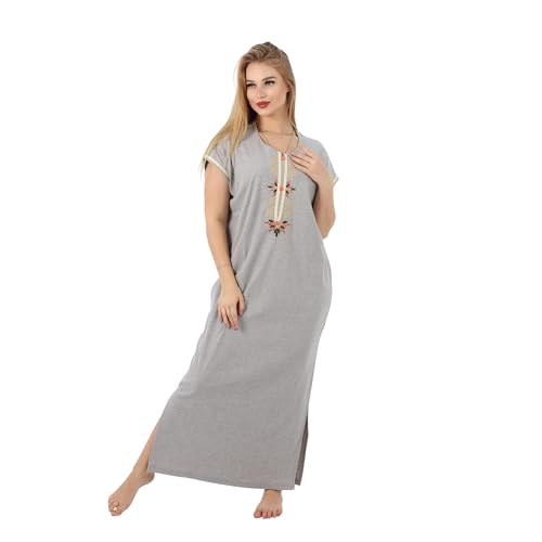 ZECOTEX - ZECOTEX Summer Maxi Abaya | Embroidered Long Nightgown | Elegant Cotton Maxi Dress | Lightweight Fabrics For | Women's Home Wear (Grey, 2XL)