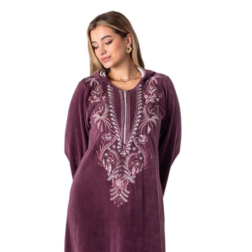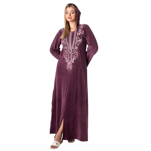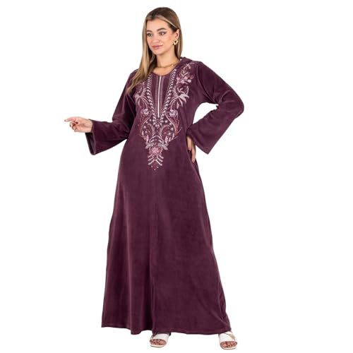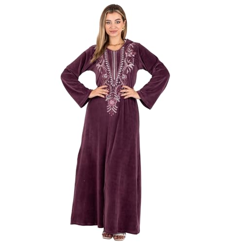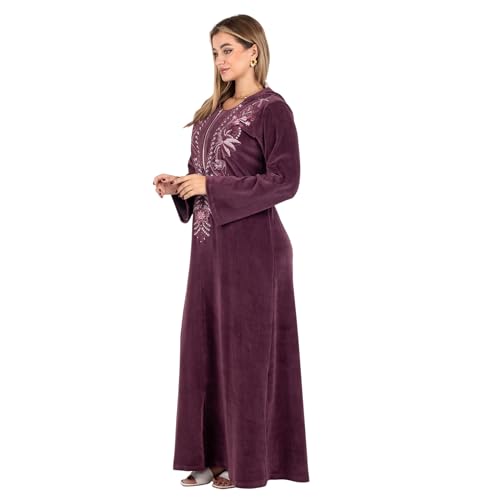ZECOTEX - Zecotex Velvet Cotton Winter Abaya Nightgown for Women | Long Cotton Velvet Home Dress with Royal Embroidery on Chest | Soft, Warm, and Comfortable Loungewear for Women