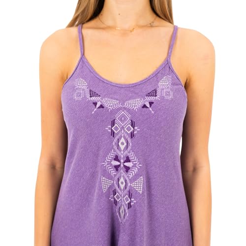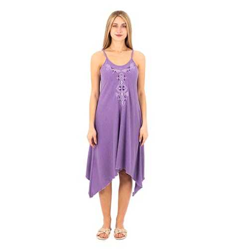 ZECOTEX - ZECOTEX Women's Nightdress |100% Ribbed Cotton | Embroidered Front | Sleeveless with Spaghetti Straps, Asymmetric Knee Length Hem | Sizes S-2XL