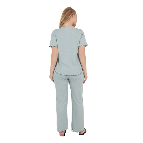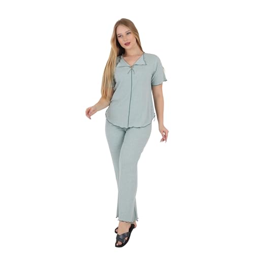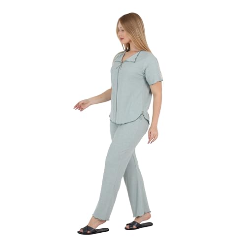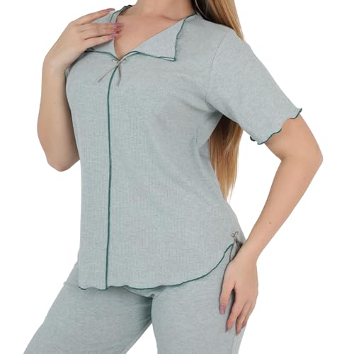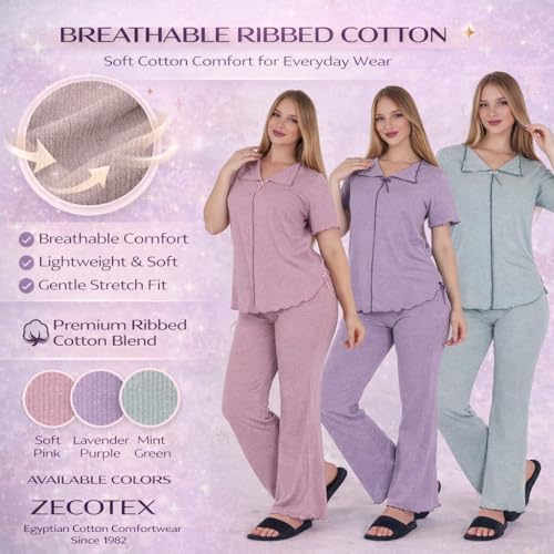 ZECOTEX - ZECOTEX Women's Ribbed Cotton Pajama Set | Short Sleeve Soft Breathable Sleepwear | Comfortable Home Wear | Sizes M–3XL | Made in Egypt