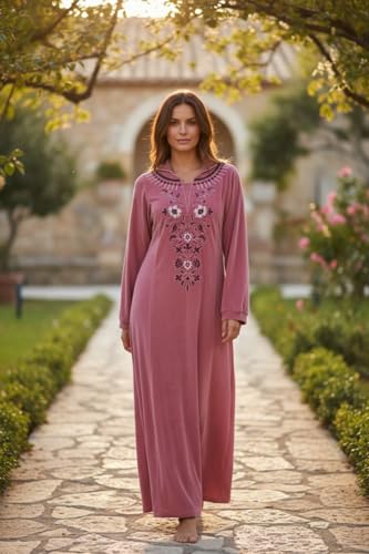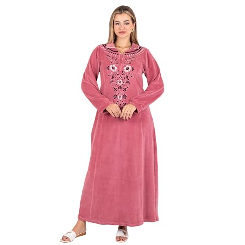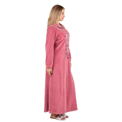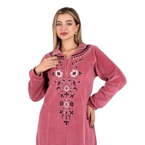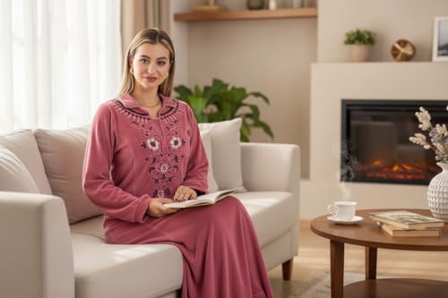 ZECOTEX - عباية نوم شتوية كلاسيكية قطيفة مطرزة للمنزل والضيوف، عباية أنيقة من قماش ناعم دافئ للنساء من زدكوتكس