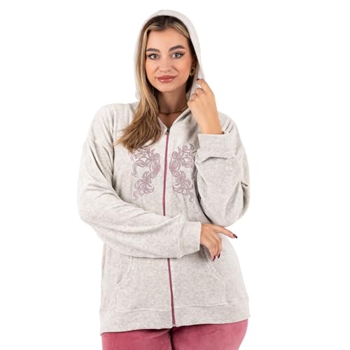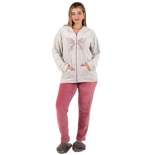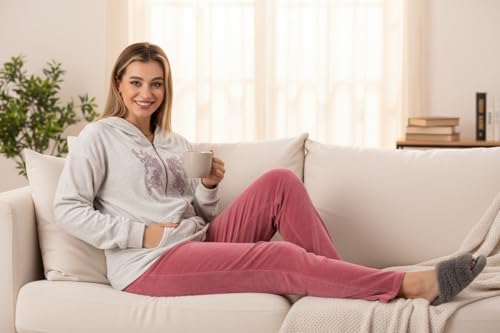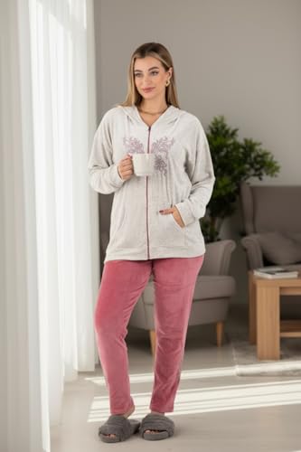 ZECOTEX - ZECOTEX Women’s Winter Velvet Embroidered Pajama Set with Hood | بيجامة حريمي شتوي قطيفة مطرزة ومريحة بكابتشو | Soft Warm & Comfortable Loungewear | Egyptian Made