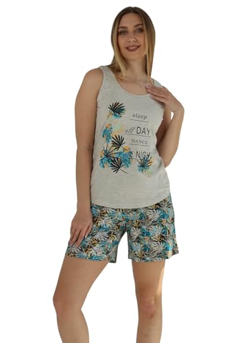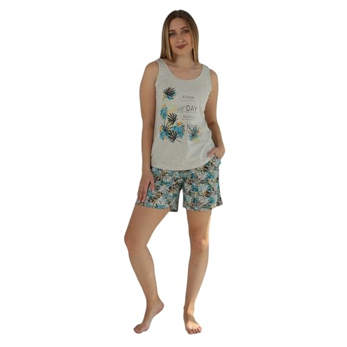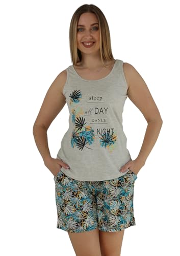ZECOTEX - ZECOTEX Women Summer Cotton Printed Pajamas | Sleeveless, Relaxed Fit, Mid Thigh Length, High Rise, Holiday Pattern, BEIGE & GREY, XL
