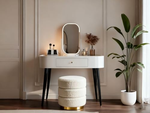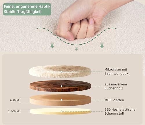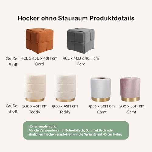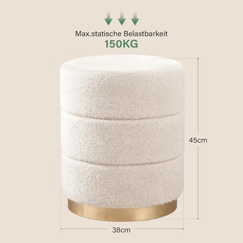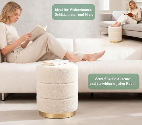 Zedelmaier - مقعد عثماني دائري من القماش تيدي لطاولة الزينة من زيدلماير مع وسادة مقعد، مسند قدم لغرفة المعيشة وغرفة النوم والرواق، φ38 × 45 سم، ابيض