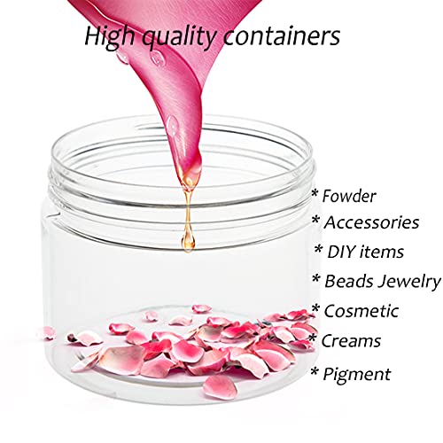 - PERFECT STORING HELPER: These small plastic jars are perfect for beauty products such as eye shadows, lotions, lipsticks, creams. Great for organizing craft supplies such as pigment, powder and beads. Also widely used in kitchen storage for spices or dry goods.