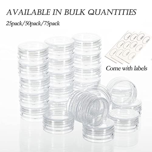 - [PERFECT STORAGE CONTAINER] Acrylic cosmetic jars are BPA-FREE sample containers. These 3-gram sample jars are perfect for storing mineralized makeup, eye shadows, lotions, lipsticks, creams, body butter, make-up, powders, lotions, lip balm, scrubs, and other beauty aids. Just use it with confidence.