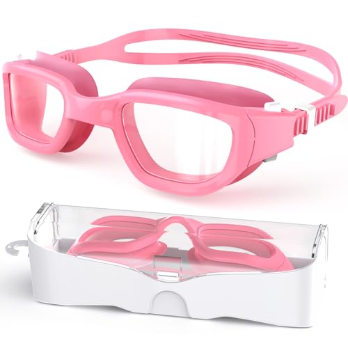 Zeligerstar - نظارة سباحة للأطفال مضادة للضباب مع حماية من الأشعة فوق البنفسجية من زيليجرستار، للأولاد والبنات من 6 إلى 14 سنة (وردي + عدسات شفافة)