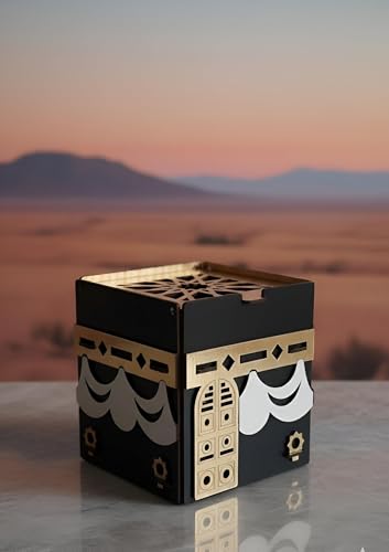 - تتميز هذه الزينة بهيكل خشبي منحوت بشكل جميل مستوحى من شكل الكعبة، حيث تعمل كقطعة ديكور منزلية جمالية وقطعة مركزية روحية تجلب الهدوء والأناقة إلى أي غرفة.