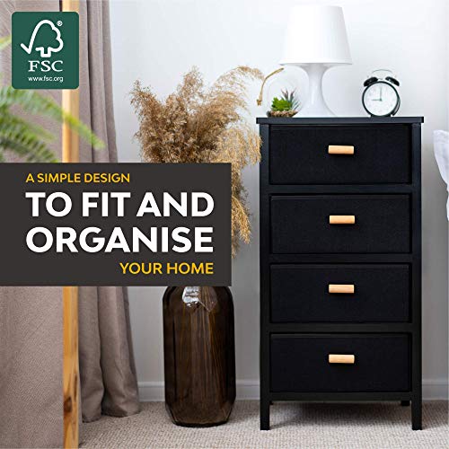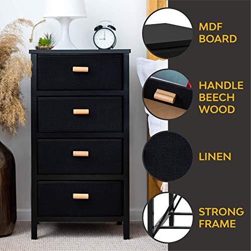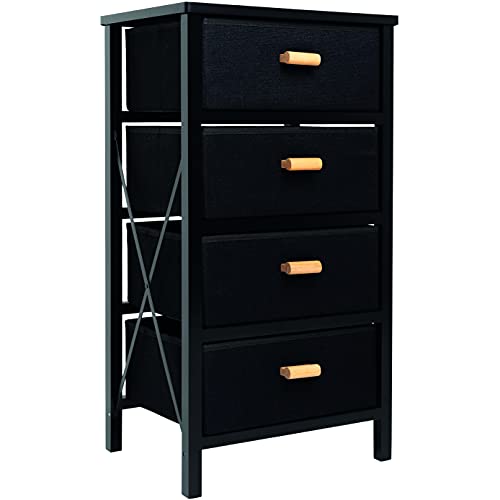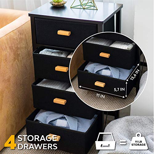 Zenacasa - Foldable Dresser for Bedroom, Black - 4 Storage Drawers - Wood Dresser, No Assembly Needed, Clothes Storage - Dresser for Room Organization & Bedroom Storage