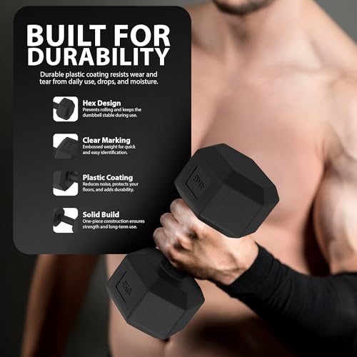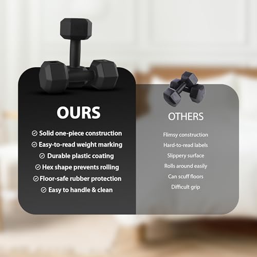 - ANTI-ROLL HEX SHAPE FOR STABILITY - Hexagonal ends keep the dumbbells steady when not in use, reducing the risk of rolling or shifting - especially useful for floor exercises or compact storage.