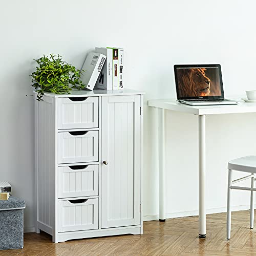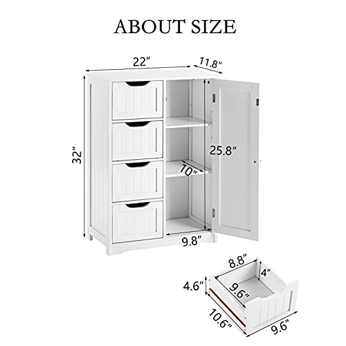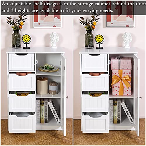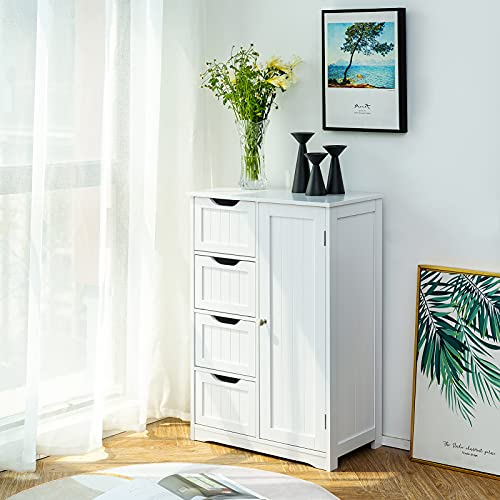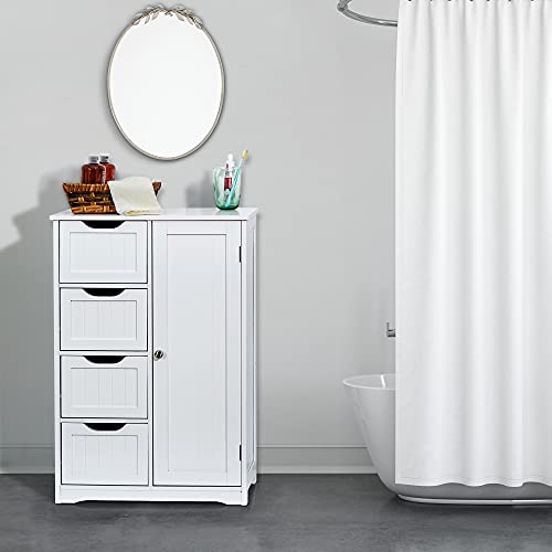 ZENODDLY - خزانة تخزين ارضية خشبية متعددة الاغراض مع ابواب وارفف للحمام وغرفة الغسيل ومدخل المطبخ ولتخزين فوط الحمام من زينودلي - لون ابيض، خشب مُصنع
