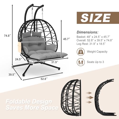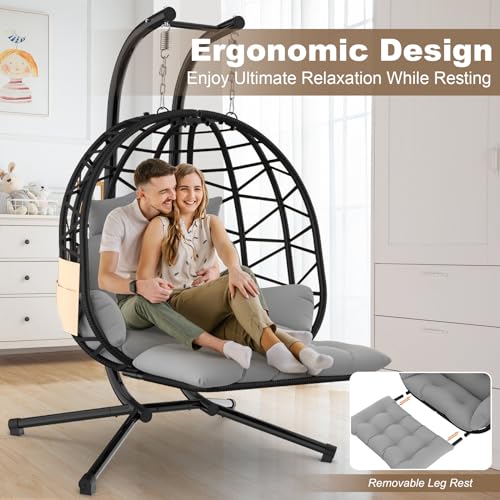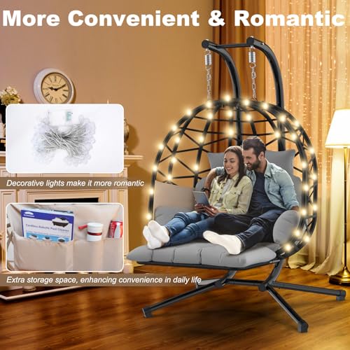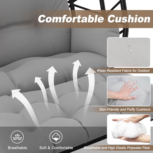 - ✅【حجم كبير جدًا】--- الكرسي البيضاوي المعلق كبير الحجم ويأتي مع حامل من زينبيتيو ليناسب شخصين. الأبعاد الكلية للكرسي المتأرجح الفاخر لشخصين 1.34 م طول × 1 م عرض × 1.9 م ارتفاع؛ السلة 1.22 م طول × 62 سم عرض × 1.16 م ارتفاع؛ مسند الساق 99 سم طول × 47 سم عرض؛ سعة 317 كجم.