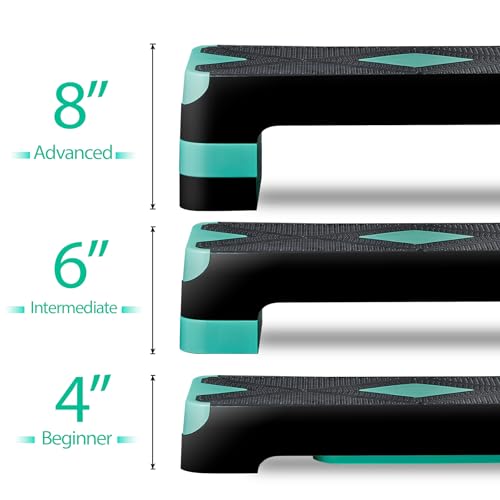 - 3 Height Levels 4'' - 6'' - 8'': This exercise step platform consists of a non-slip platform with support blocks that can adjust the height from 4 to 6 to 8 inches depending on the intensity of the workout. The workout stepper is a widely used aerobic fitness system, perfect for beginners and advanced athletes looking to work out at home